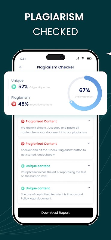 Nie musisz pobierać oddzielnych aplikacji do sprawdzania gramatyki, sprawdzania plagiatu, streszczania, parafrazowania lub przepisywania. Wystarczy pobrać naszą pojedynczą aplikację Paraphrase i mieć wszystkie te narzędzia w jednym miejscu. Nadaj swojemu procesowi pisania nowy i bardziej produktywny charakter!