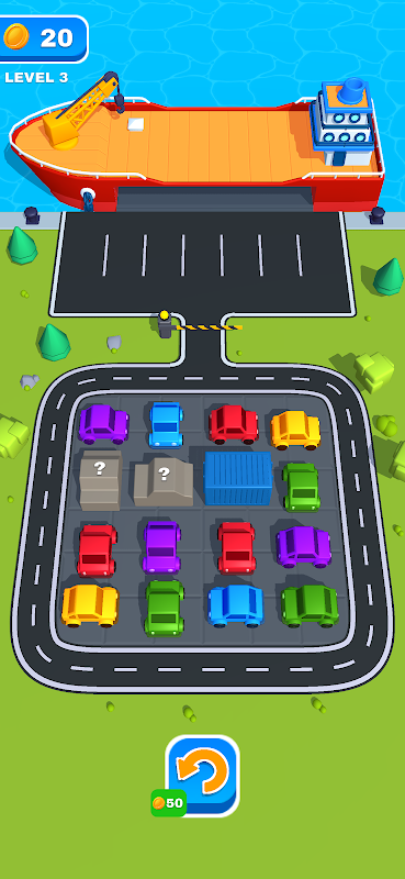 Przesuń samochody do doku i załaduj je na statki w celu transportu, ale tu jest haczyk – muszą do siebie pasować! Połącz w pary trzy samochody tego samego koloru, aby pomyślnie je załadować. Myśl wydajnie i strategicznie, aby sprawdzić swoje umiejętności dopasowywania!