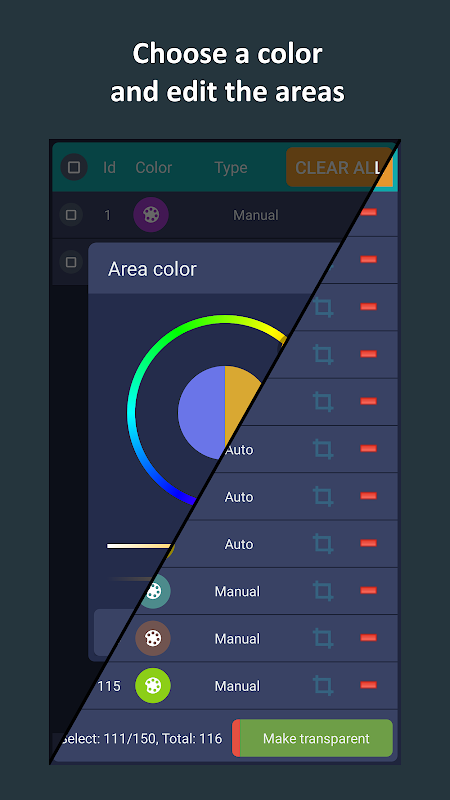 - zmienić przejrzystość wszystkich obszarów;