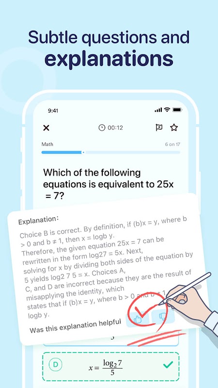 Najważniejszą częścią zdania egzaminu SAT jest ciągłe ćwiczenie i nie stracenie zaufania do testu. Przekonasz się, że za każdym razem, gdy ćwiczysz w ramach egzaminu Pass Exam: SAT® Exam Prep 2025, Twoja wiedza na temat testu wzrasta, zwiększając tym samym Twoją pewność zdania egzaminu.