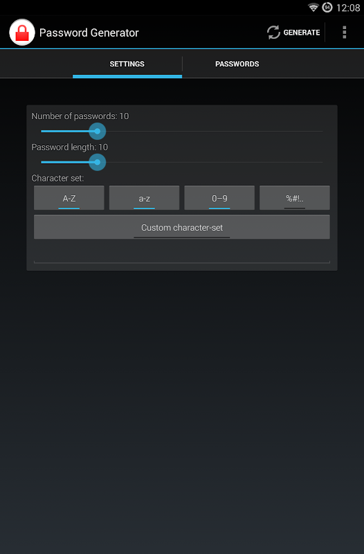 This app helps you generating secure and fully random passwords.
