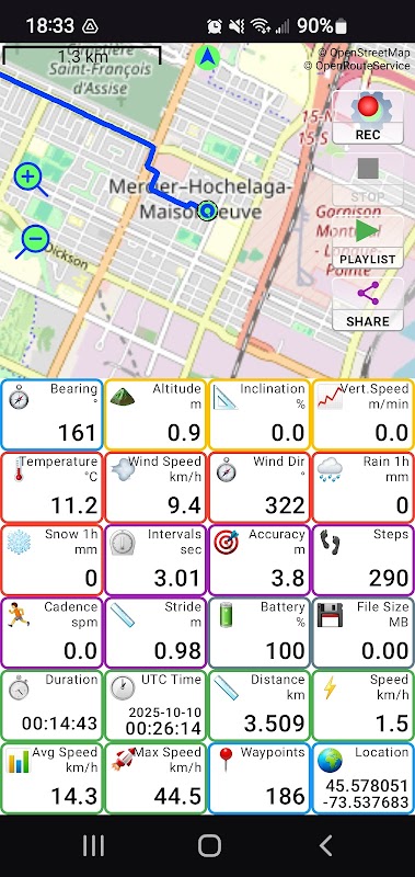 Zacznij od ustawienia interwału nagrywania GPS. Dostosuj swój pulpit za pomocą kafelków, które mają znaczenie – użytkownicy wersji darmowej otrzymują podstawowe dane, takie jak prędkość, dystans i wysokość, a wersja Fun dodaje dane pogodowe, licznik kroków, kompas i analizę nachylenia.