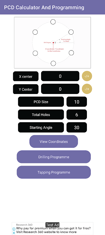 Kalkulator PCD i aplikacja do programowania to rodzaj aplikacji, która pomaga nowym programistom CNC / VMC poznać współrzędne otworów o średnicy koła podziałowego / PCD.