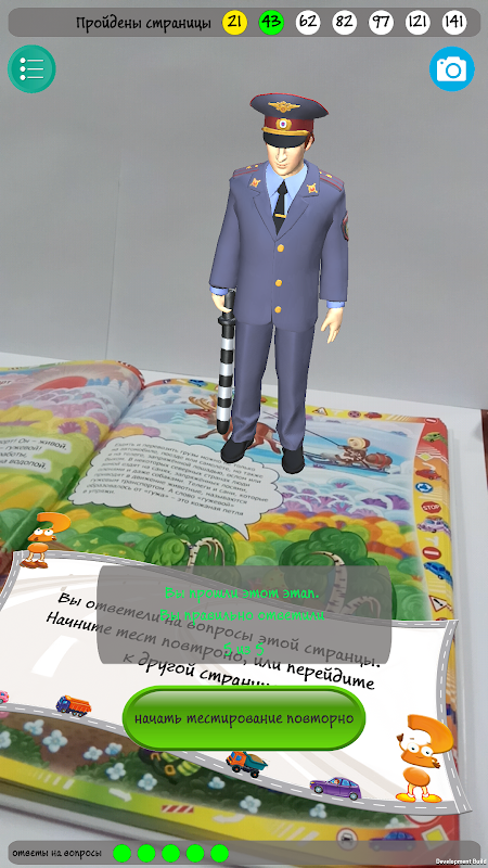 Главный же сюрприз ждет вас, как только скачаете приложение PDDBookROOSSA Наведите электронное устройство на страницу, помеченную таким значком . И на экране появится инспектор Автодорогин. Он станет вам вопросы задавать – серьезно экзаменовать. Для ответа на некоторые вопросы вам даже понадобится помощь взрослых. Но тем интереснее. А если что-то не поймете на слух – не беда. На форзацах книги можно еще раз внимательно прочесть каждый вопрос, чтобы после ответить правильно.
