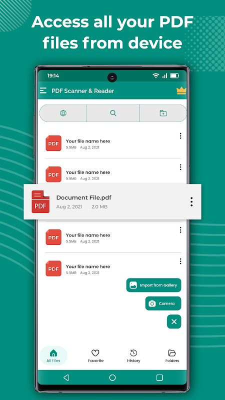 Ciesz się wygodą przekształcania fizycznych dokumentów w pliki cyfrowe, konwertowania różnych formatów na pliki PDF oraz bezproblemowego uzyskiwania dostępu do biblioteki PDF i zarządzania nią. Ulepsz swoje zarządzanie dokumentami dzięki najlepszemu i najbogatszemu w funkcje skanerowi PDF i czytnikowi PDF - aplikacji Image to PDF Converter już dziś!