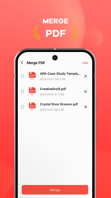 Scal PDF 📑: Bezproblemowo łącz wiele plików PDF w jeden dokument za pomocą zaledwie kilku dotknięć.