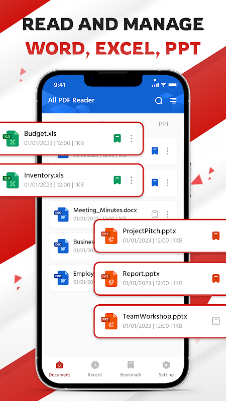 PDF Reader:Word&Excel&PPT to proste, wydajne narzędzie do przeglądania, zarządzania i organizowania dokumentów w telefonie. Niezależnie od tego, czy otwierasz pliki PDF, czytasz pliki Office czy zarządzasz biblioteką plików — wszystko dzieje się w jednym miejscu.
