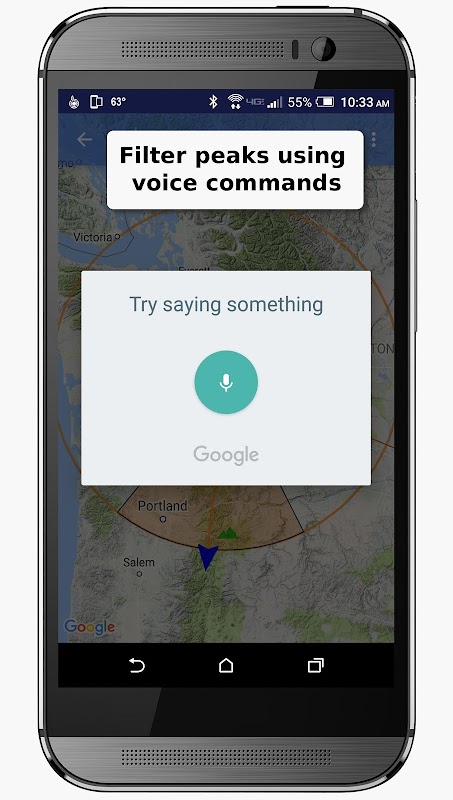 PeakIdentify shows your current location, or that