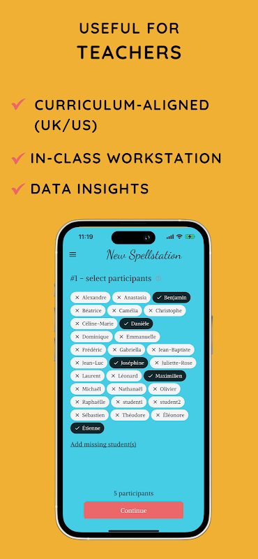 - nauczyciele mogą korzystać z aplikacji na lekcjach i do odrabiania zadań domowych, aby zwiększyć częstotliwość i zainteresowanie ortografią