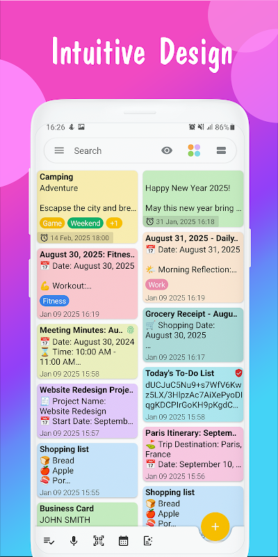 - Dostosowywalne & elastyczne: Wybierz widok siatki lub listy, koduj kolory notatek i dodawaj etykiety dla lepszej organizacji.