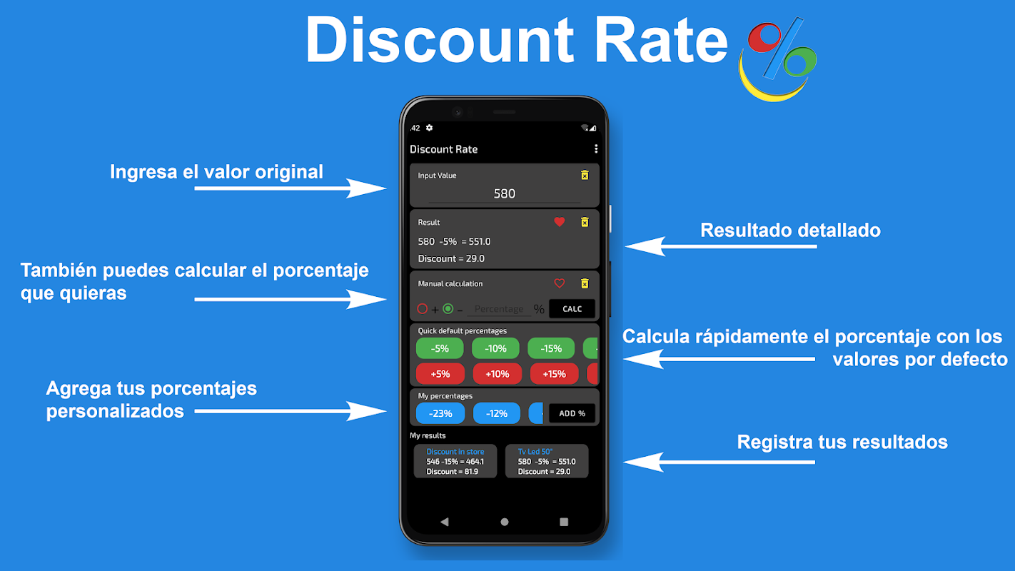 With Discount Rate you can quickly calculate the percentage you want. Increase or discount.
