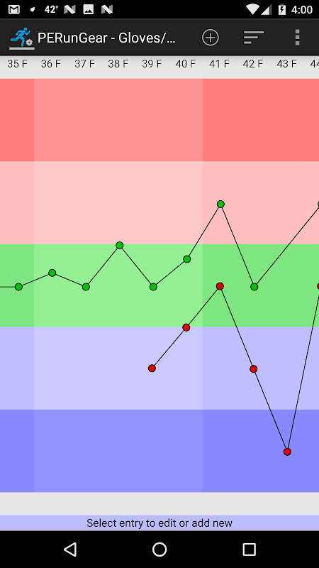 This app helps you decide what running attire to wear in cold weather. You enter descriptions of your run-wear -- hats, gloves, shirts, shorts, thermals, etc. The next time you go running, make note of what you wore and how it felt. After just a few entries, a useful database will be developed which you can consult to help you decide what to wear on future runs. Data can be backed up to DropBox, which also allows sharing of data with other devices. A free Windows app is also available for download, to allow you to access data from your PC.