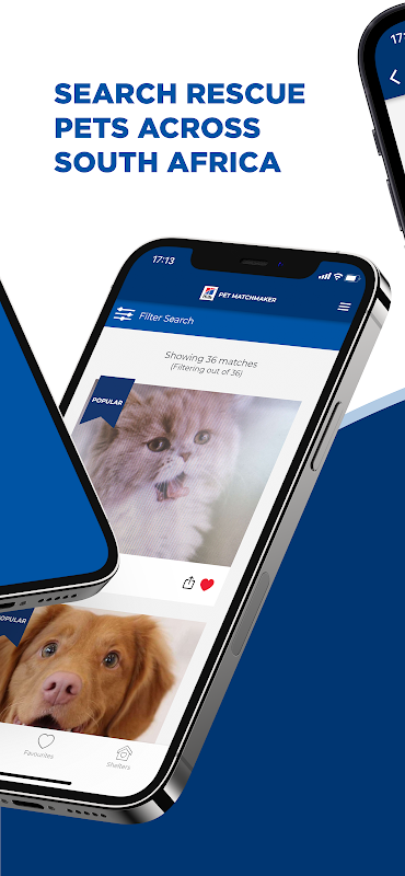 Możesz wyszukiwać zwierzęta z różnych schronisk w całej Afryce Południowej. Nie musisz przedzierać się przez rzędy bud lub hodowli, aby znaleźć tę magiczną. Nie musisz też wykonywać niekończących się wyszukiwań w Internecie. Przyprowadziliśmy do was wszystkich tych wspaniałych przyszłych kumpli, którzy czekają, aż ich wybierzecie; w wannie, w kolejce, na siłowni czy nawet w pracy.