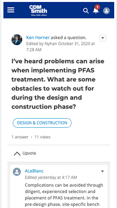 PFAS represent a unique threat to the world's water infrastructure, and the search for effective, cost-efficient solutions is ongoing. Presented by CDM Smith, this community facilitates constructive conversations about PFAS and how to treat for these pervasive contaminants. This is your chance to claim a spot on the cutting edge and become a leader in PFAS response.