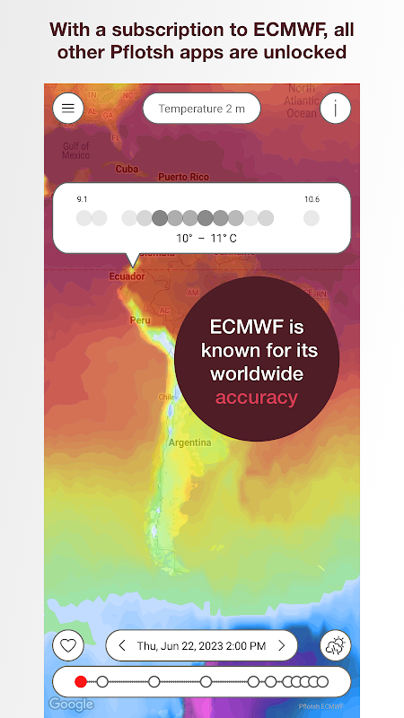 Pflotsh ECMWF to "pro app" wśród aplikacji Pflotsh. Jeśli jest zainstalowany na urządzeniu i subskrypcja jest aktywna, wszystkie pozostałe aplikacje Pflotsh na tym samym urządzeniu również są aktywne.