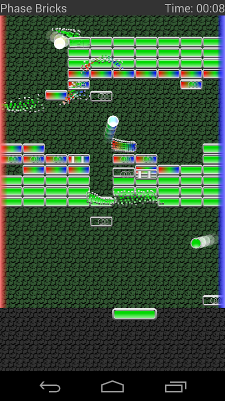 Cegły i kule mogą znajdować się w „fazie” lub poza nią, którą można kontrolować za pomocą gestu przesunięcia. Jeśli cegła jest poza fazą, kule przechodzą przez nią. Jeśli kula jest poza fazą, przechodzi przez paletkę. Będziesz chciał zrównoważyć optymalną fazę skutecznego niszczenia cegieł z utrzymaniem kul w grze. Nie zapomnij, że fazę można zmienić podczas sterowania paletką, jeśli Twoje urządzenie obsługuje multi-touch.