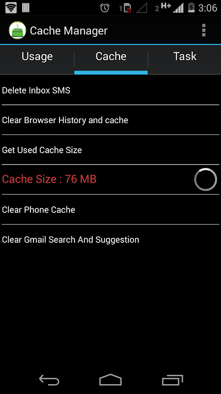 Phone Manager is cache cum Task killer. Cache manager help you to manage your phone memory and cache. It allow you following thing