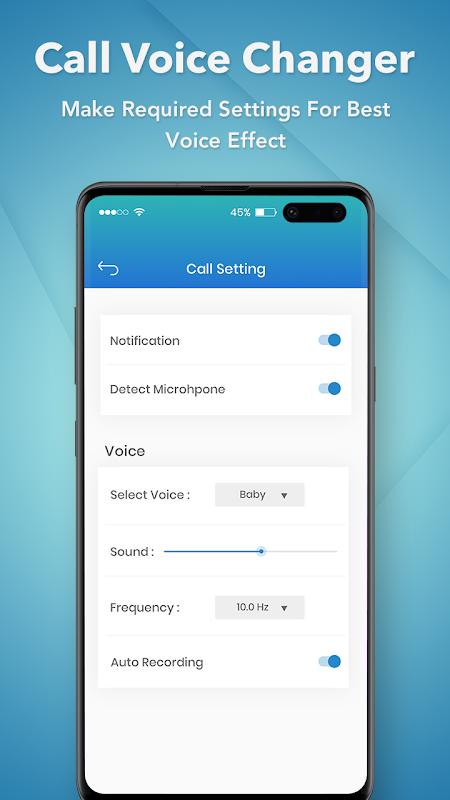 Ten zmieniacz głosu z efektami możesz zmienić swój głos podczas połączenia z dziewczyną za pomocą aplikacji Zmieniacz głosu i zmieniacza głosu w trybie offline. Zmieniacz dźwięku i zmieniaj głos podczas połączenia, zmieniacz głosu z efektami pozwala zmienić głos na dziewczynę lub zmienić głos podczas połączenia.