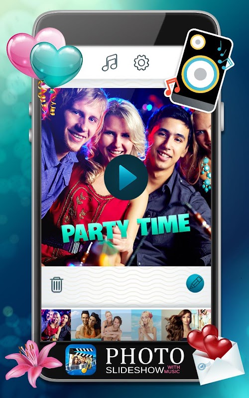 Wybierz i edytuj zdjęcia, przycinaj je i dodaj filtry zdjęć do jednego zdjęcia lub całego filmu! Dostosuj czas trwania slajdu od 1 do 240 sekund! Dodaj swoje ulubione naklejki z fotografiami, ramki i dodawaj tekst do zdjęć w dowolnym miejscu! Udostępniaj pokaz zdjęć w sieciach społecznościowych prosto z aplikacji Zdjęcie Pokaz Slajdów Z Muzyką!