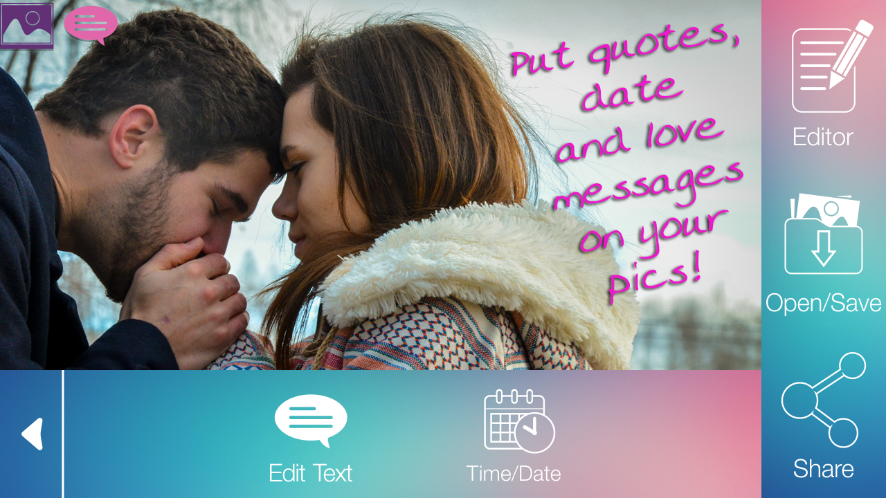 Nie musisz edycji zdjęć online, z "Napisać na Zdjęciach" Wszystko czego potrzebujesz to urządzenie Android ™ i można tworzyć własne PicsArt! Prosty, łatwy w użyciu i skuteczne, to słodkie zdjęcie oprogramowanie montaż pomoże zamienić zdjęcia w prawdziwe uczucie Instagram! Zrób swój własny kącik Photobooth za darmo! Możesz użyć tego fajny program do edycji stworzyć pomysłowe i wyjątkowe tapety tło na smartfonie lub tablecie. Można również tworzyć pomysłowe karty i plakaty i dodawać je do swoich znajomych ścianie fb! Możliwości jest wiele, wszystko do Twojej kreatywności! Zaskocz ukochaną i pisać "miłość" na wiadomości pic do rocznicy!