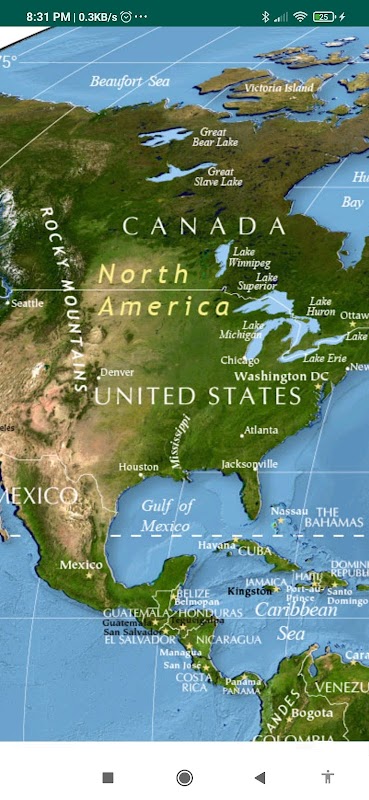 - Mapy fizyczne Ameryki Północnej,