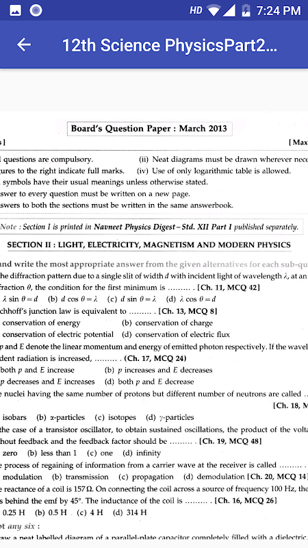 This Android App Brings you 12th Science Physics Part 2 Solution, notes and old papers Maharashtra hsc board. you will find chapter wise solutions and important questions and answers. The app contains following chapter of 12th Science physics part 2 :-