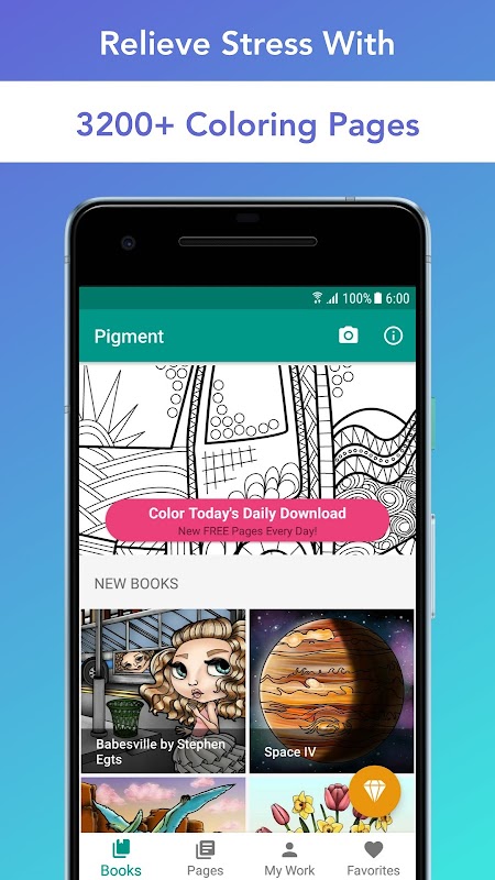 So take a break, and relax with Pigment, the ultimate coloring book app. You can choose to 'tap and fill' or immerse yourself in Pigment's unique coloring experience that lets you color like you would on paper, with 21 different pencils, markers and brushes.