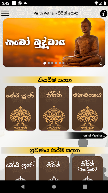 Ta aplikacja pozwala na słuchanie buddyjskiego Pirith Deesana, Bodhi pooja