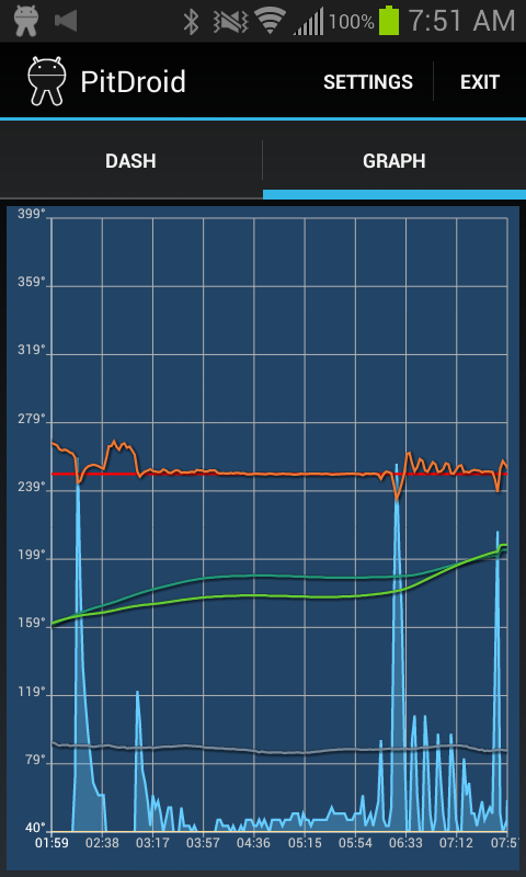 PitDroid to aplikacja do monitorowania kontroler HeaterMeter BBQ. Ma wykres temperatury w czasie rzeczywistym, podobnej do tej, na wewnętrznej stronie w HeaterMeter, a deski rozdzielczej do oglądania poszczególnych temperatur. Można również ustawić alarmy, więc wiesz, czy mięso jest uderzanie właściwą temperaturę, lub twój pit jest ochłonięcie.