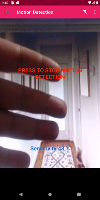Niesamowita funkcja „wykrywania ruchu” z „nagrywaniem wideo” w naszej aplikacji pomaga otrzymywać powiadomienia o wszelkich ruchach, takich jak włamanie, skradanie się zmrożone, ucieczka, przeszkadzające miłe chwile z ukochaną osobą lub unikanie skradania się podczas snu lub nawet w obóz, aby mieć oko na swój namiot (oko kamery). Oto rozwiązanie, po prostu skieruj kamerę urządzenia na drzwi lub ścieżkę, a aplikacja wykona za Ciebie obserwację i ostrzeże Cię, jeśli ktoś uciekł lub zbliży się do Ciebie.