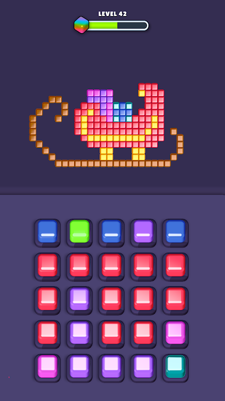 Połącz 3 lub więcej pasujących kolorowych kostek w siatce 6x6. Każde dopasowanie wypełnia część tajemniczego obrazu nad siatką — tak jak kolorowanie według numerów, ale z odrobiną strategii i kreatywności!