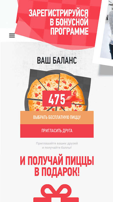 Бонусная программа: получай и трать бонусы на оплату пиццы в приложении