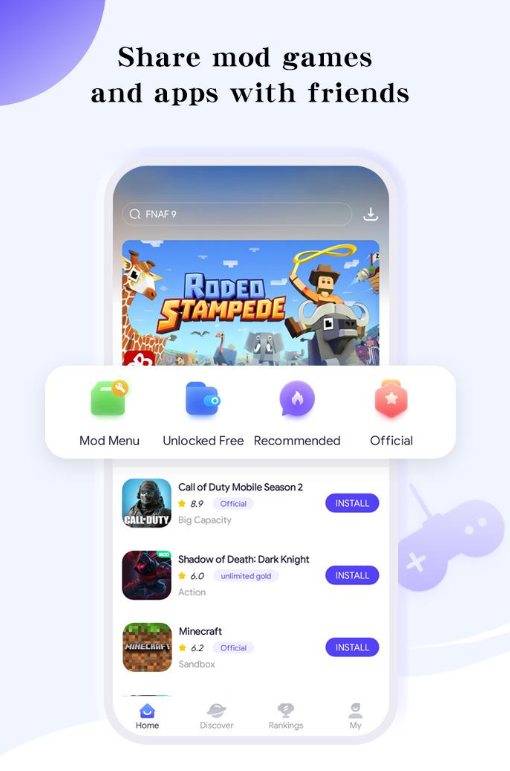 Udostępniaj MOD-y innym użytkownikom za pośrednictwem sieci społecznościowych.