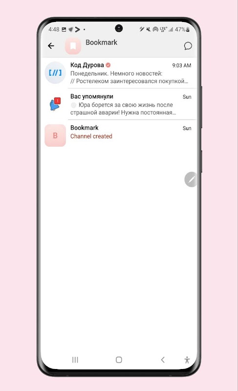 • Oddzielne zakładki do czatów: użytkownicy, grupy, kanały, boty, ulubione, nieprzeczytane, administrator/twórca.