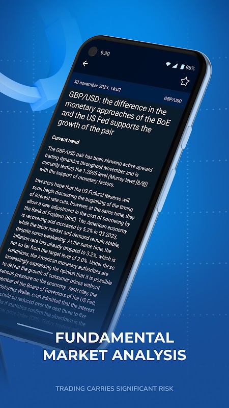 Aplikacja jest dostępna w języku indonezyjskim, hiszpańskim, portugalskim, tajskim, angielskim i rosyjskim. Dostępne są wszystkie materiały dla następujących aktywów: EUR, USD, GBR, JPY, CHF, CAD, NZD, AUD, srebra, złota, Brent oraz akcji.