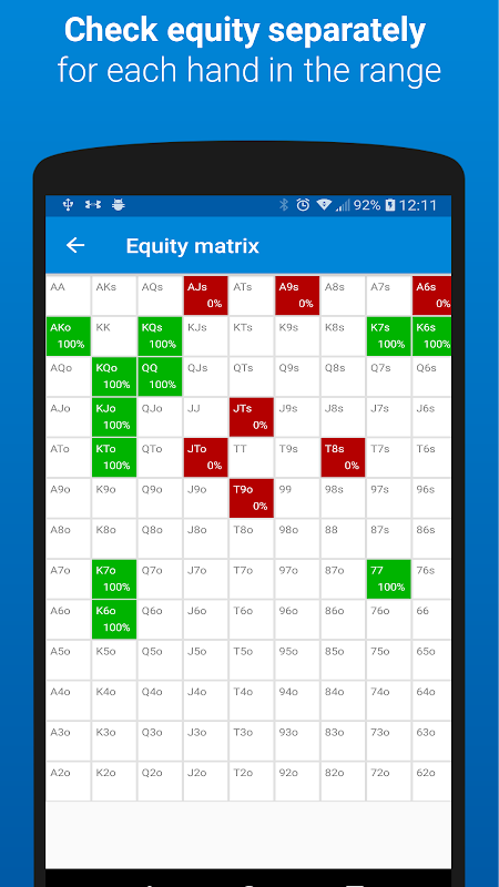 - Kalkulator equity dla zasięgów i rąk od 2 do 10 graczy