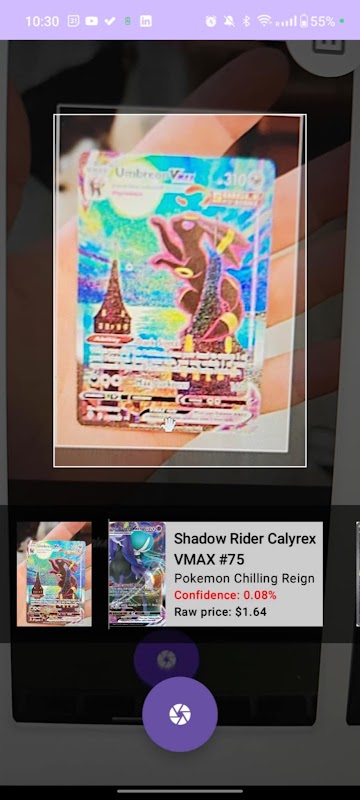 PokeVision to Twój najlepszy towarzysz do identyfikowania i wyceny kart Pokémon za pomocą aparatu w smartfonie i technologii głębokiego uczenia. Wystarczy wskazać, pstryknąć i natychmiast uzyskać szczegóły dotyczące karty w dłoni — bez pisania, zgadywania i kłopotów.