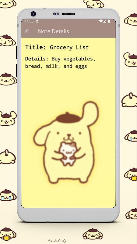 Aplikację ozdobiono zachwycającymi obrazami Pompompurin, tworząc wesołe i przyjemne środowisko do robienia notatek.