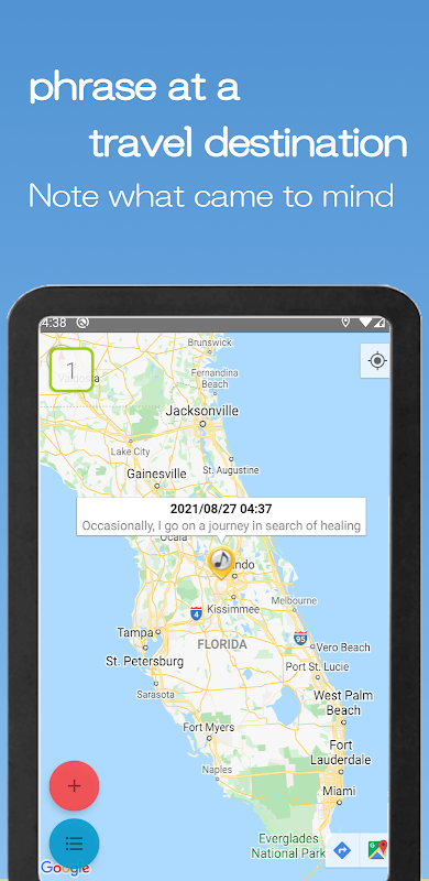 ・ Jedno kliknięcie pinezkę (lokalizacja rejestracji), aby wyświetlić tytuł notatki