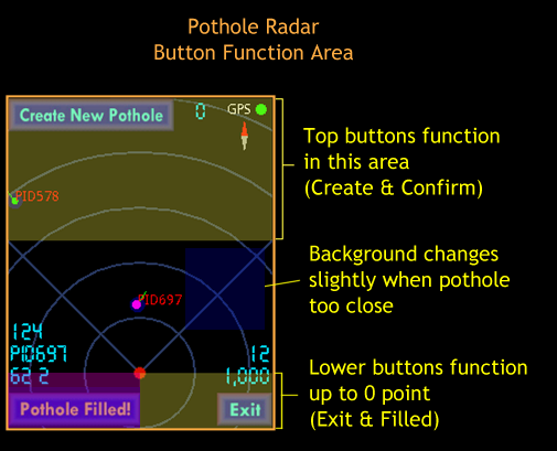 Aplikacja korzysta z lokalizacji GPS do znalezienia dziur oznaczonych przez Ciebie i innych w pobliżu. Następnie działki je na ekranie radaru, aby zobaczyć i daje ostrzeżenie dźwiękowe, gdy zbliżać. Kiedy wybój jest mniejsza niż 50 metrów, można potwierdzić, że tam jest lub oznaczyć ją jako wypełnione.