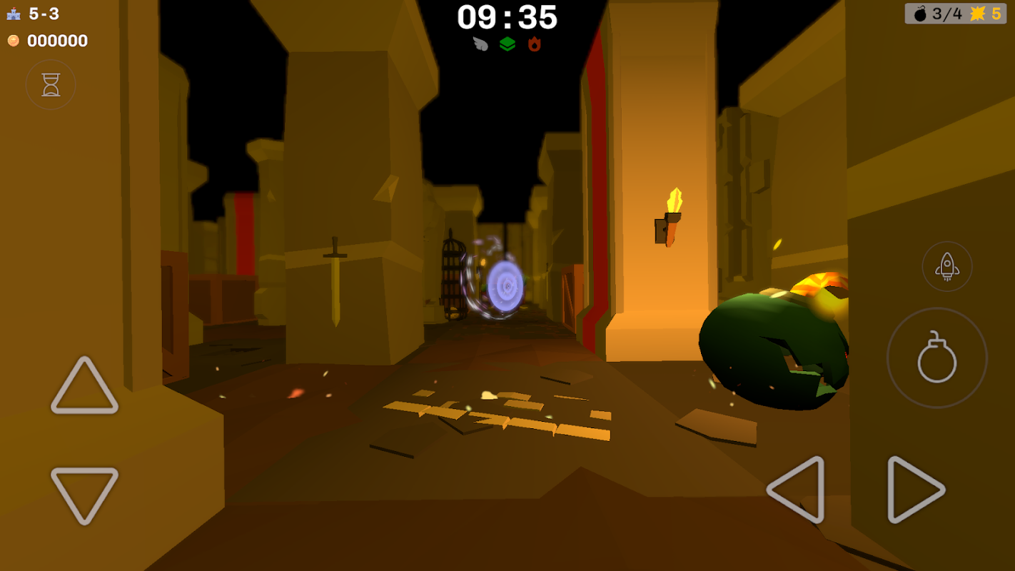 Gra zręcznościowa/przygodowa Bomber - steruj bohaterem z perspektywy pierwszej osoby, podrzucaj bomby, aby pokonać wrogów i dostać się do wyjścia.