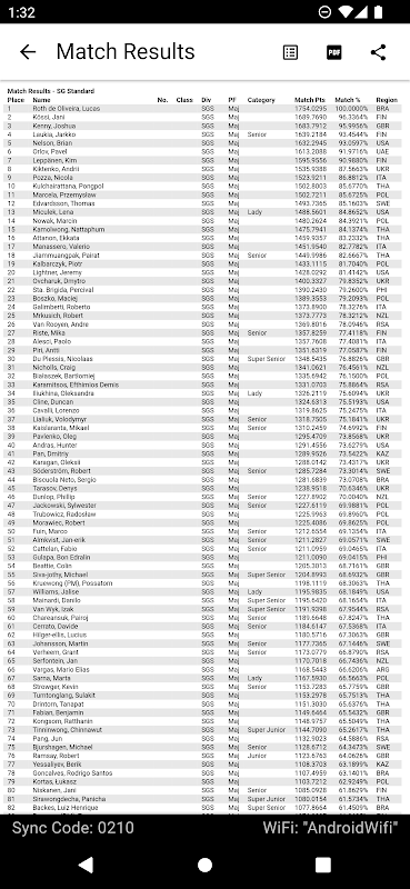 - Synchronizacja Wi-Fi wyników i definicji meczów pomiędzy urządzeniami