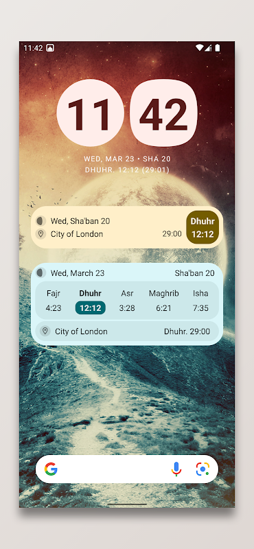• Wyświetlaj czasy modlitwy na widżetach lub pasku powiadomień