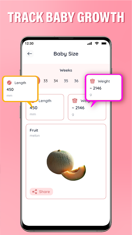 📏 Śledzenie rozmiarów dziecka: Otrzymuj cotygodniowe aktualizacje dotyczące wzrostu i wagi dziecka dzięki naszemu śledzeniu rozmiarów dziecka. Obserwuj, jak Twoje dziecko rośnie od maleńkiego ziarenka maku do pełnoletniego pęczka radości!