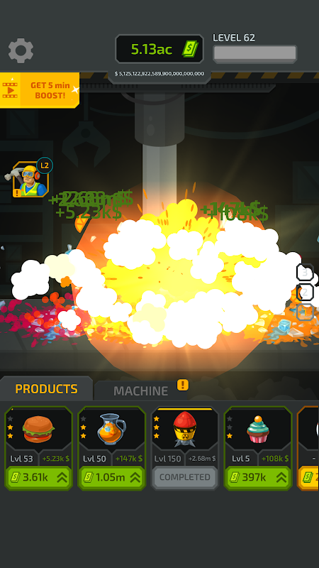 Destroy products in the most satisfying way. Upgrade your machine and increase your factory's income.