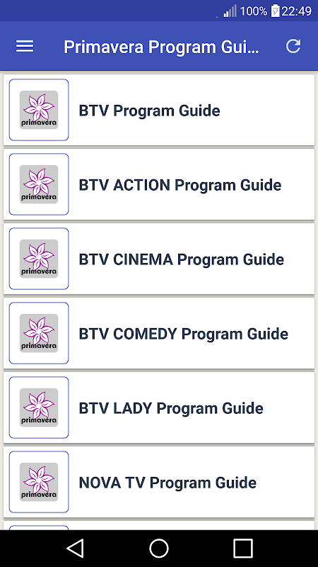 Primavera-programmagids biedt u snelle, betrouwbare en nauwkeurige tv-lijsten voor tv-zenders in Azerbeidzjan, Bulgarije, Rusland en Turkije.