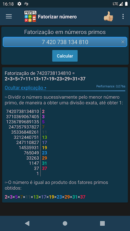 Liczby pierwsze podane w tabeli są obliczane przez procesor smartfonu i nie są wstępnie obliczane stół, dzięki czemu można korzystać z doskonałą generator liczb jako punkt odniesienia dla zdolności przetwórczych między smartfonów.