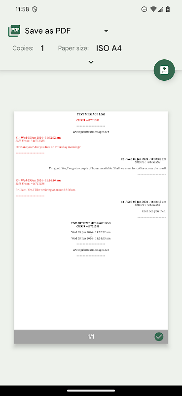 Drukuj wiadomości tekstowe z telefonu do pliku PDF.