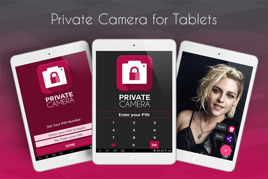 Prywatne kamery sprawiło ukrywa zdjęcia łatwe. Bezpieczeństwo jest priorytetem. Prywatna Kamera wykorzystuje wbudowany aparat umożliwia robienie zdjęć i utrzymuje bezpieczne od innych. Zapewnienie wyizolowaną osobistej galerii z własnych zdjęć, które chcesz ukryć przed światem. Tylko można otwierać, przeglądać, dzielone i usunięte poprzez prywatne aplikacji Aparat.