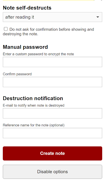 Just write your note, and you'll get a link. Then you copy and paste that link into an email (or instant message) that you send to the person who you want to read the note. When that person clicks the link for the first time, they will see the note in their browser and the note will automatically self-destruct; which means no one (even that very same person) can read the note again. The link won't work anymore.